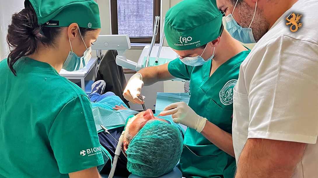 O módulo incluiu sessões teóricas e práticas, destacando-se a realização de cirurgias de implantes em utentes do Serviço de Estomatologia e Medicina Dentária do Polo do Porto, reforçando a componente formativa e assistencial da iniciativa.