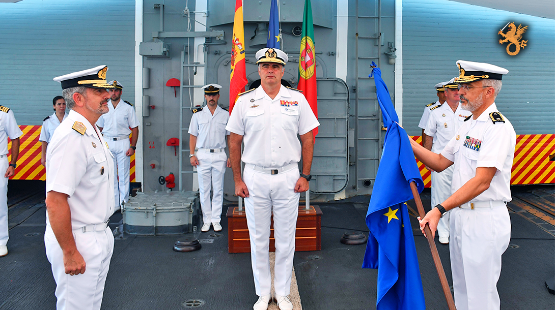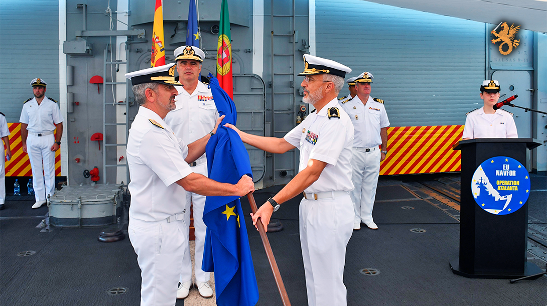 A cerimónia, realizada a bordo da fragata Navarra, da Armada Espanhola, foi presidida pelo Comandante Operacional da Operação ATALANTA, Vice-almirante Ignacio Villanueva Serrano, e contou com a presença de várias altas entidades militares e civis.