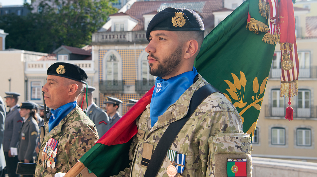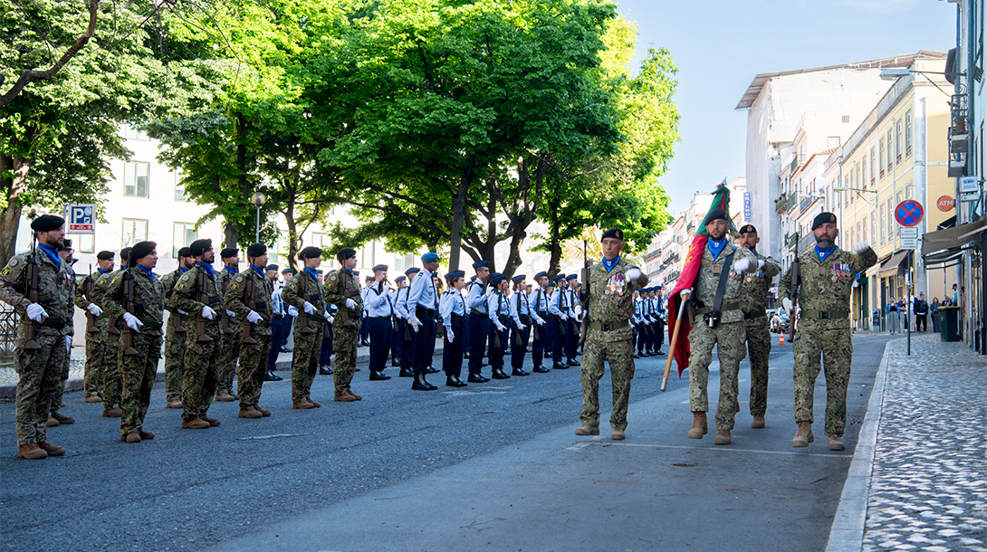 Durante a cerimónia, as Forças Armadas participaram nas honras militares e asseguraram a Guarda de Honra ao Estandarte Nacional.