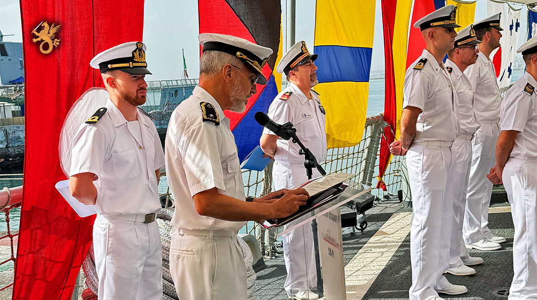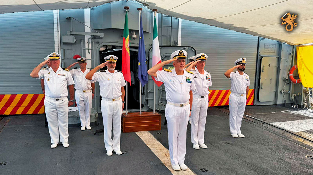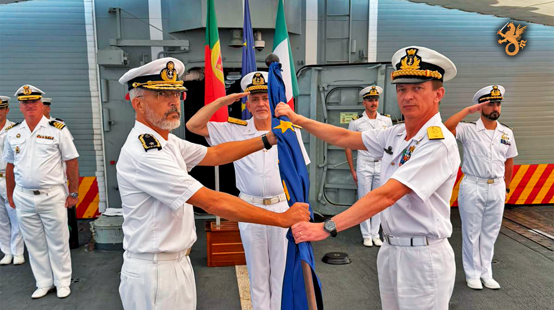 A cerimónia de passagem de comando, realizada no dia 20 de fevereiro, marcou a transição de responsabilidades para o Rear Admiral Daniele Paolo Martinuzzi, da Marinha Italiana, que assume agora o comando da 52.ª Rotação da EUNAVFOR.